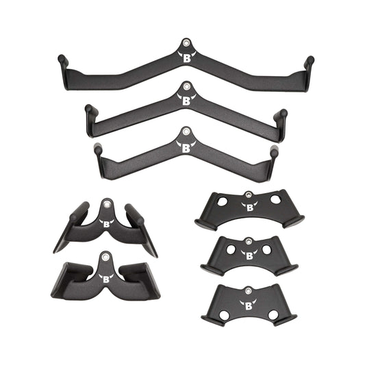 Cable Machine Attachments. Black Matte Handles with Universal Attachment for Cable Machines. Pull Down, Press Down, Row, Triceps, Biceps & Lats.