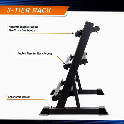 - MULTI-LEVEL STORAGE FOR FREE WEIGHTS – Store your dumbbells in a designated space that you can easily access while keeping things organized in your home gym! This rack stand features a 3-tiered storage space designed to accommodate dumbbells of all sizes.