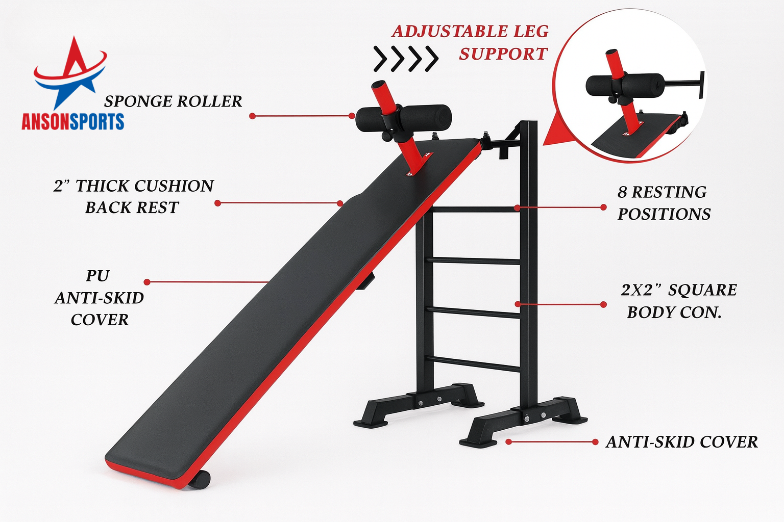 The ANSON Pro-Style Ab Board ASAB200 is a high-performance core training bench designed for serious abdominal workouts, helping users strengthen, tone, and sculpt their abs with maximum efficiency and comfort. Whether you’re a beginner looking to build core strength or an advanced athlete aiming for chiseled abs, this commercial-grade ab board offers the adjustability, durability, and ergonomic support needed for an effective workout.