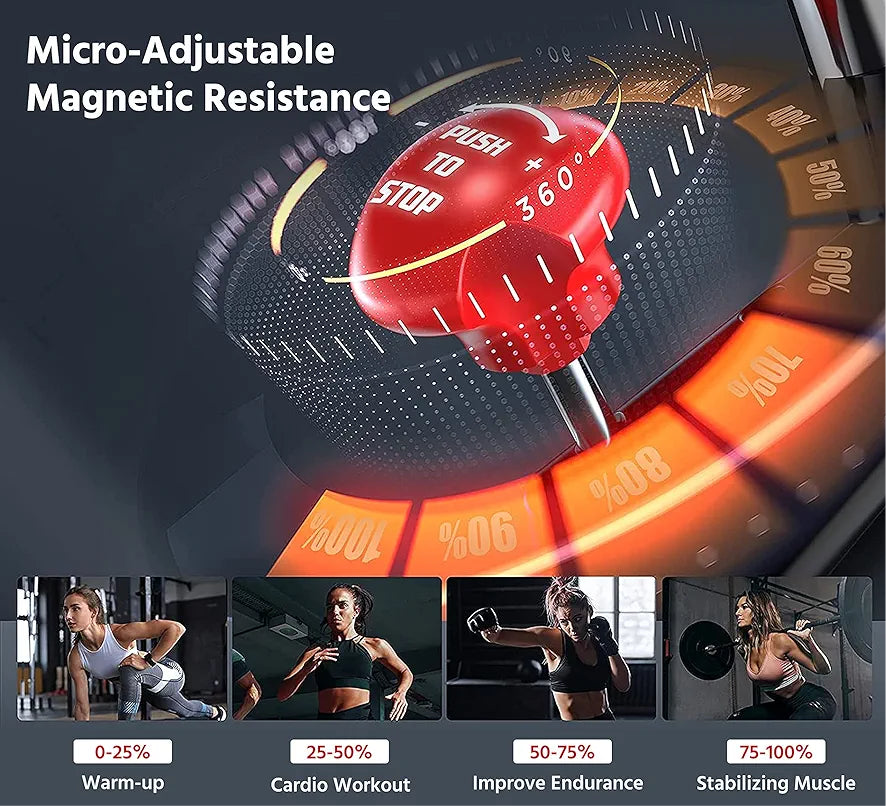 - Resistance- Increase resistance or come to a complete stop in a flash with the friction resistance knob. Use the resistance knob to increase and decrease resistance applied to the flywheel