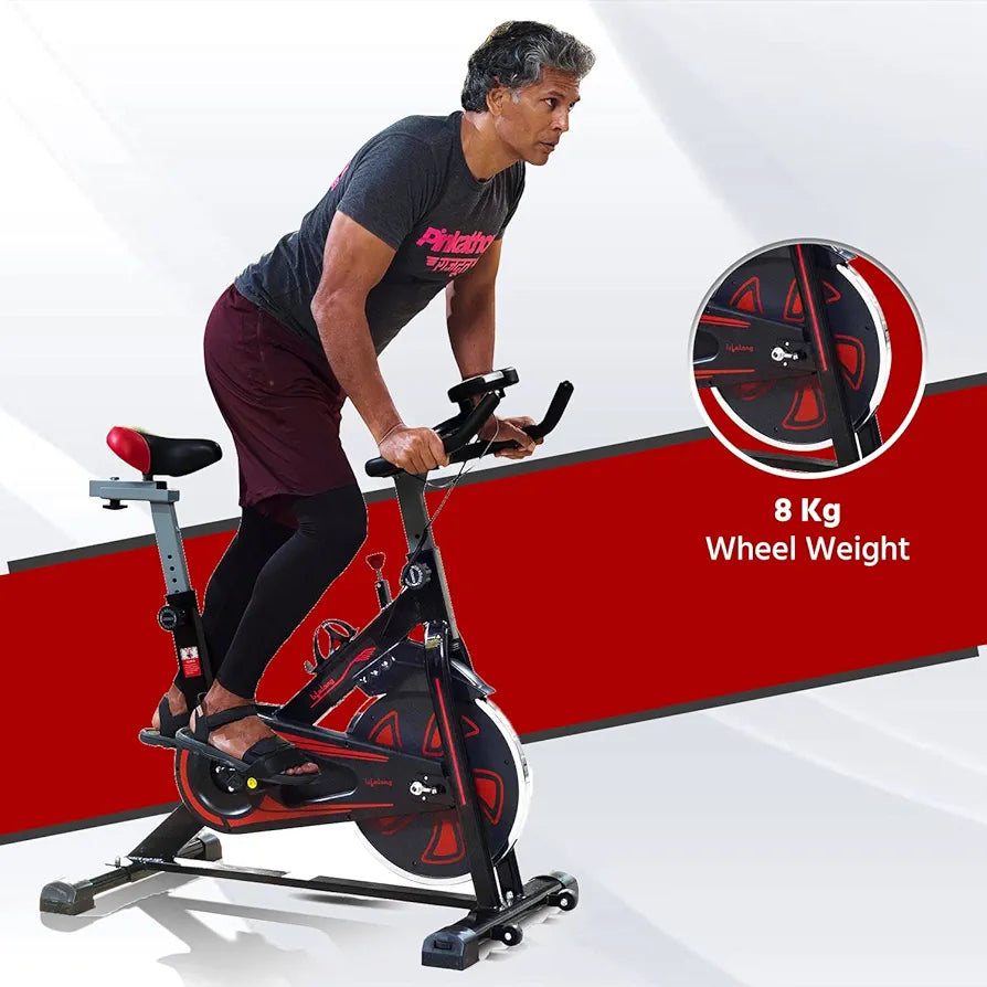 Spin Fitness Bike with 8Kg Flywheel, Adjustable Resistance, LCD Monitor and Heart Rate Sensor for Fitness at Home; Home Workouts